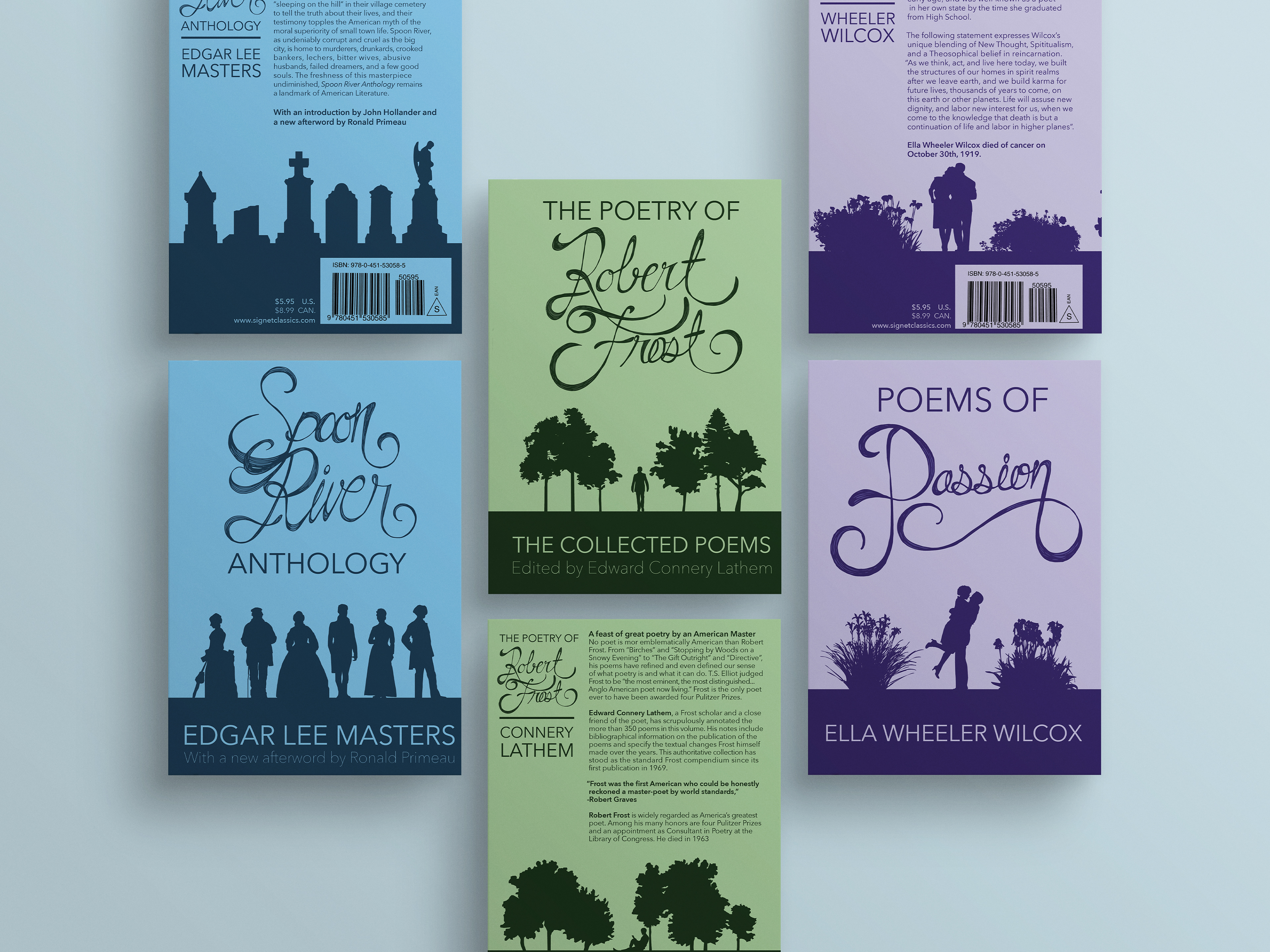 With these book cover redesigns, I wanted to take older, classics and give them more appeal to a younger, more modern audience. I used silhouetted illustrations and minimal typography to create that modern feel, but still included hand lettering to keep the classical influence.